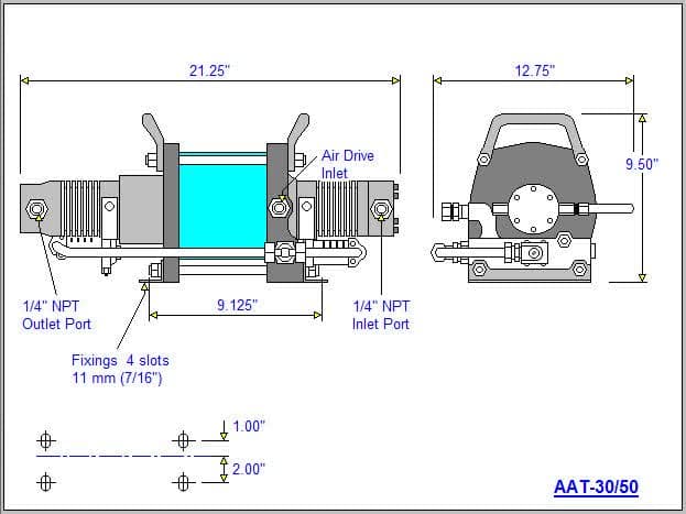 نقشه ابعادی بوستر ( آمپلی فایر ) هوا شرکت هسکل Haskel مدل Haskel model AAT-30-50 :