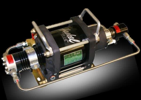 Double-Acting, Single Stage Air Amplifier can boost air pressures to a maximum of 4500 psi PSIG.